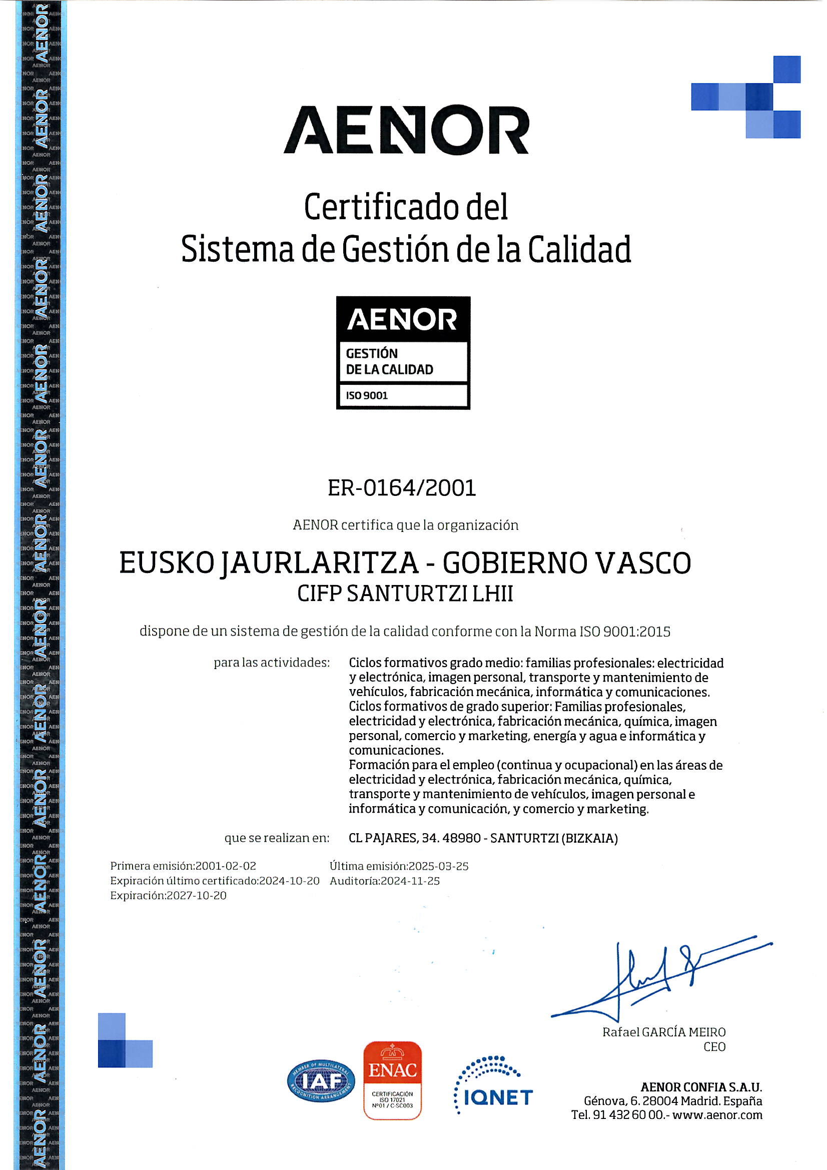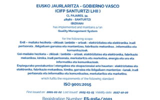 - Gestión de calidad ISO 9001, desde 2001.